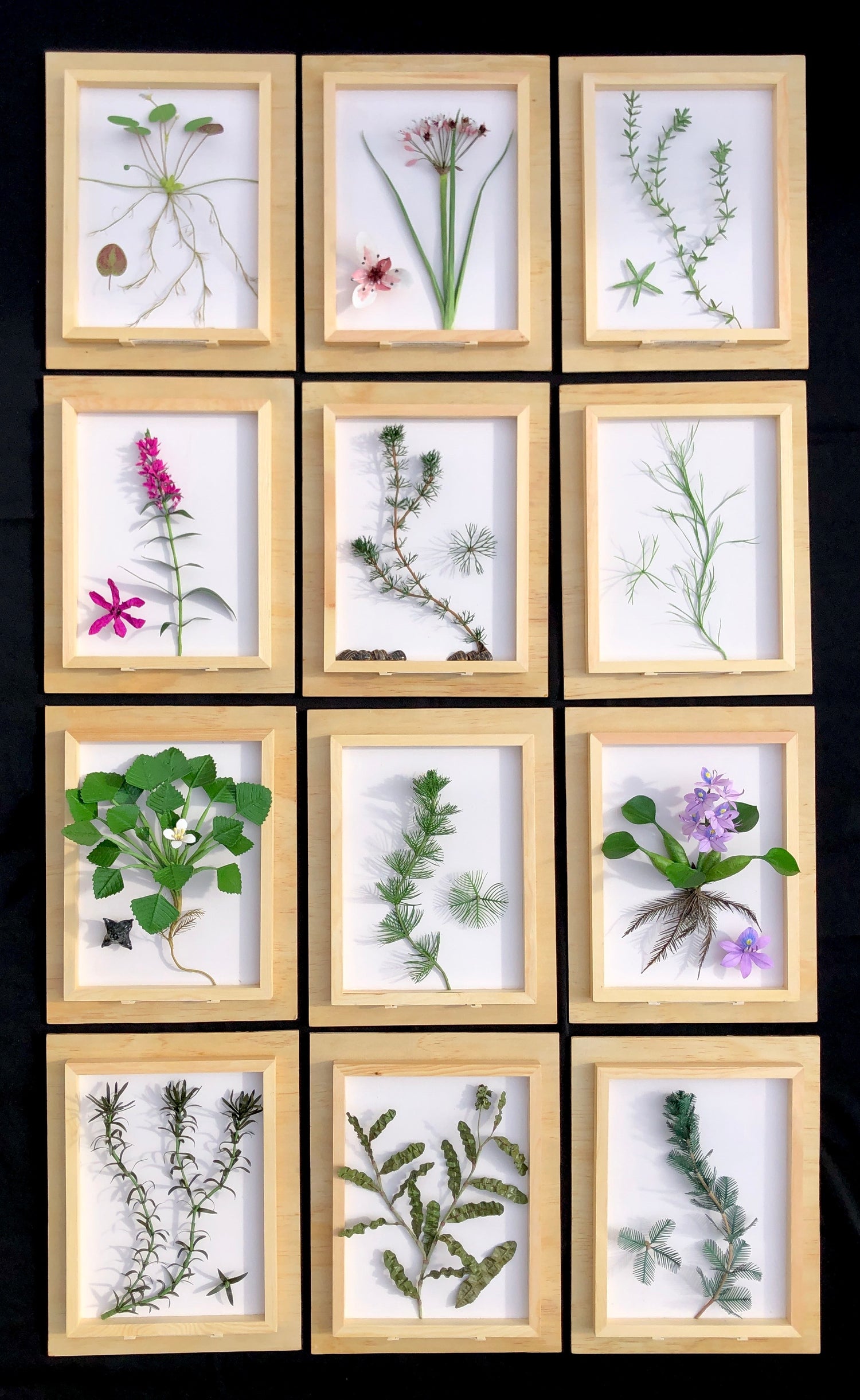 Welcome to my website! I create detailed botanical sculptures out of paper and mount them in shadow boxes for display.